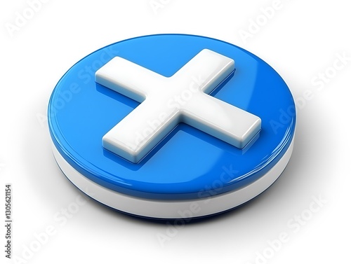 © Ardhana, Obraz premium Blue Cross Button, 3D Render, White Background