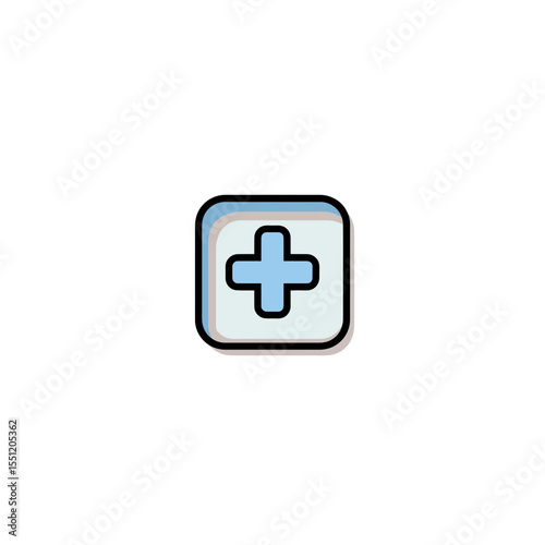 Obraz premium Blue cross icon represents addition inside rounded square button