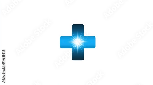 © Cre-AI-Tor , Fototapeta premium Blue Cross Icon with Light Burst on White Background