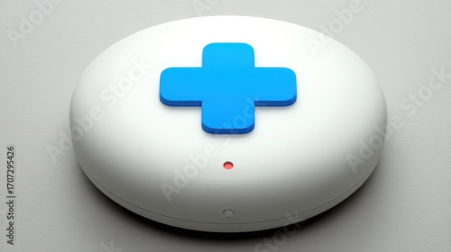 Fototapeta premium Blue cross positioned on a white button symbolizing clarity and focus in content prioritization and design