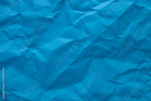 Obraz premium Blue crumpled paper texture as background. Copy space text