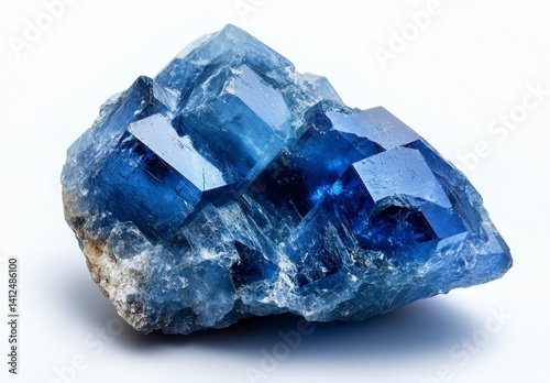 © Namdang, Obraz premium Blue crystal cluster with sharp facets and natural texture