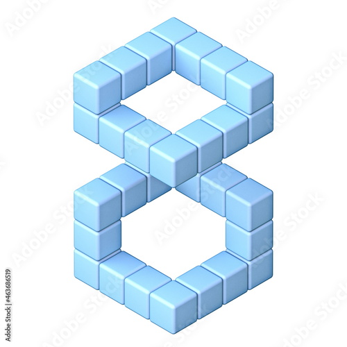 © djmilic, Fototapeta premium Blue cube orthographic font Number 8 EIGHT 3D