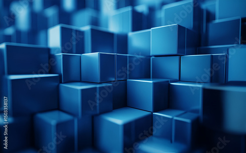 © Jannat00, Obraz premium Blue Cubes Abstract 3D Background