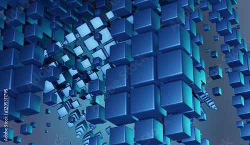 © omkuhh, Obraz premium Blue cubes falling digital background abstract technology illustration