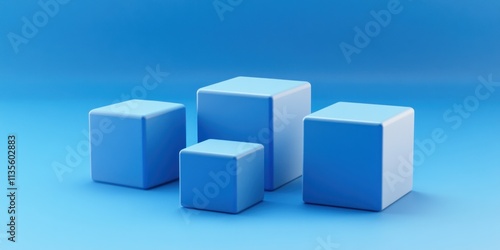 © Alfath, Obraz premium Blue cubes on blue background, 3D render.