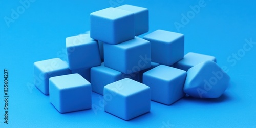 Obraz premium Blue cubes scattered on a blue background.
