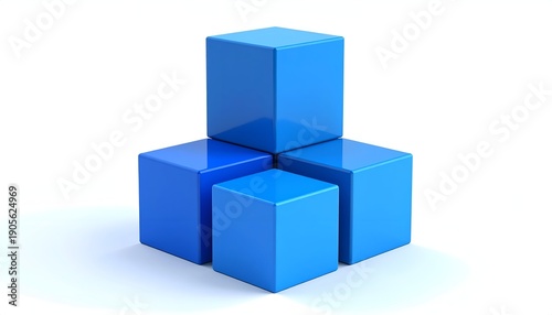 © daeng, Fototapeta premium Blue Cubes Stacked in a Pyramid Formation on White Background.