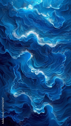 Obraz premium Blue curling waves in a multi-level stereogram illusion