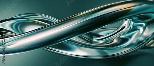 © Eyepain, Obraz premium blue curve wave dynamic flow abstract chrome silver metallic abstract wallpaper.