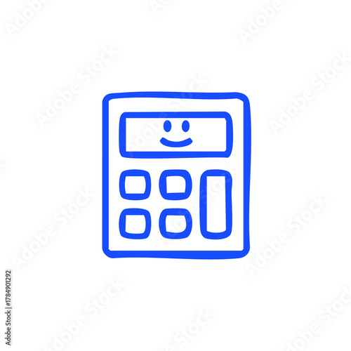 © Ipmawan, Fototapeta premium Blue, cute, calculator with a smiling display
