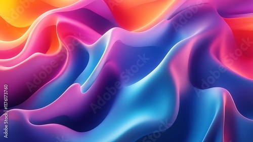 © Thirakun, Obraz premium Blue 3D abstract design with smooth flowing curves and a radiant colored background