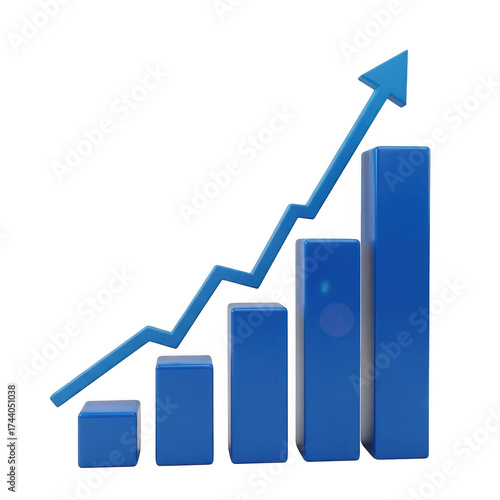 © Tarikulsio, Fototapeta premium Blue 3d bar chart and upward trending arrow symbolizing business growth and success transparent background