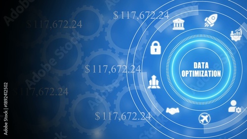Obraz premium Blue data optimization infographic with white and dollar amounts blue...