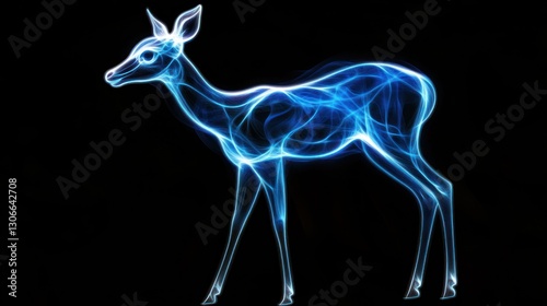 Obraz premium Blue deer, energy, night, dark background, wildlife art