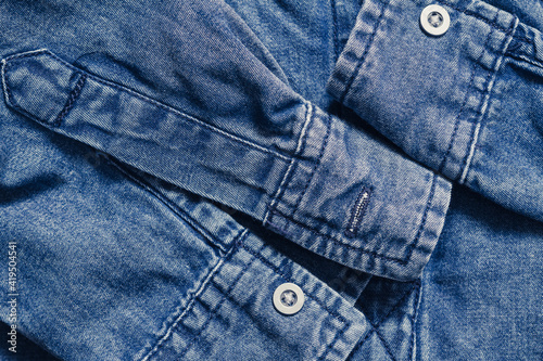© tartalja, Fototapeta premium Blue denim clothing top view background