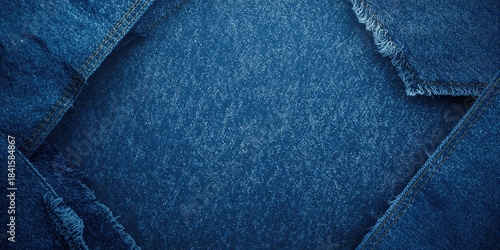 Naklejka premium Blue denim textile featuring stone-wash finish serving as a backdrop for apparel layout, fabric detail focus