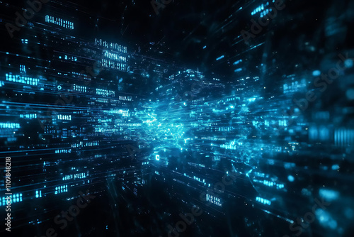 Obraz premium Blue digital binary data on a computer screen, creating a futuristic,...