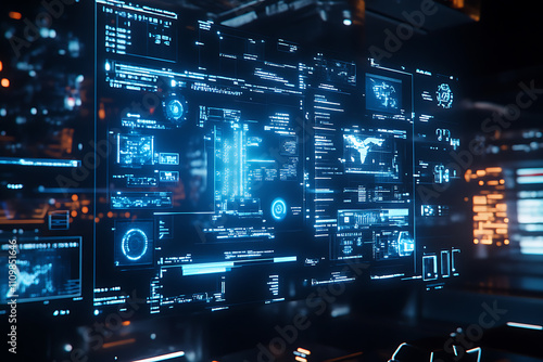 Obraz premium Blue digital binary data on a computer screen, creating a futuristic,...