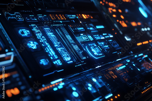 Obraz premium Blue digital binary data on a computer screen, creating a futuristic,...