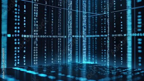 © QasimAli, Obraz premium Blue digital binary data on computer screen background