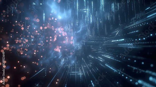 Obraz premium Blue digital binary data on computer screen background wallpaper, digital...