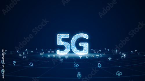Obraz premium Blue digital 3D 5G logo with futuristic technology icon and line connection...