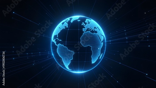 Obraz premium Blue digital globe with network lines