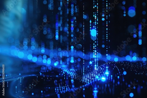 Obraz premium blue digital light source, equalizer sound waves, blue light drops