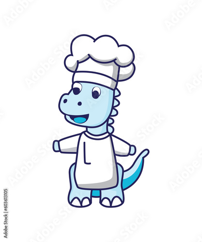 Fototapeta premium Blue Dinosaur Chef Cartoon