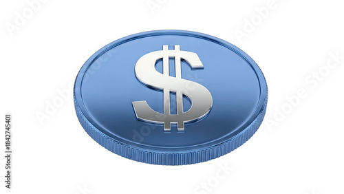 © lailatu, Obraz premium Blue Dollar Coin on White Background