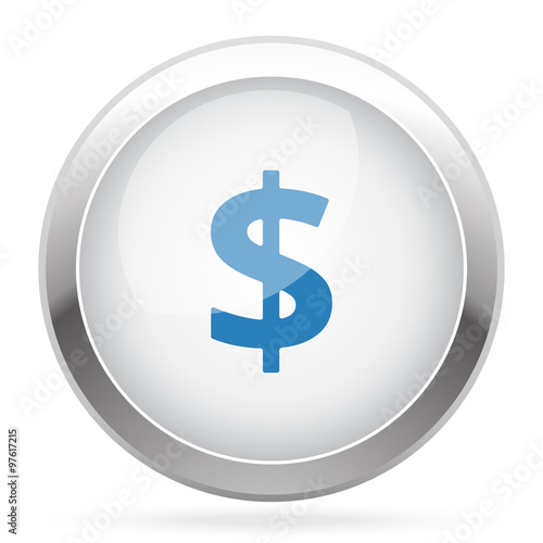 © Imagevector, Obraz premium Blue Dollar icon on white glossy chrome app button