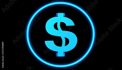 © Anugrah, Obraz premium Blue dollar sign neon circle