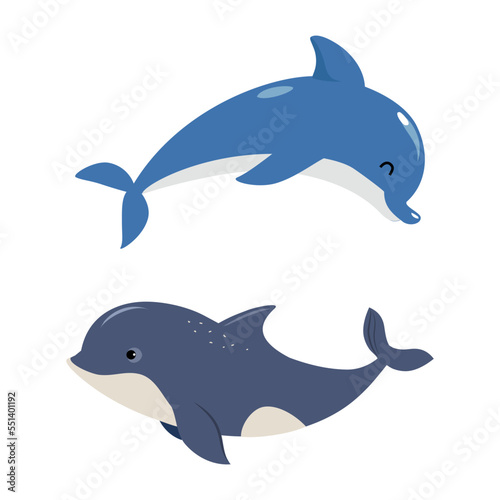 © topvectors, Fototapeta premium Blue Dolphin as Sea Animal Floating Underwater Vector Set