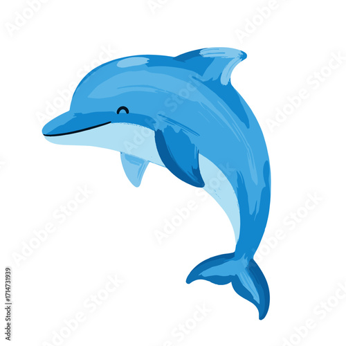 Fototapeta premium blue dolphin, cute dolphin, cartoon dolphin, whimsical dolphin, jumping dolphin, playful dolphin, baby dolphin, adorable dolphin, kawaii dolphin, little dolphin, funny dolphin, ocean animal, sea creat