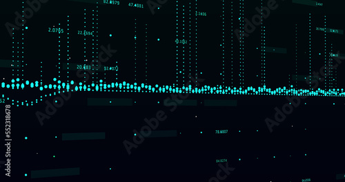 © vectorfusionart, Fototapeta premium Blue dots and numbers moving against black background