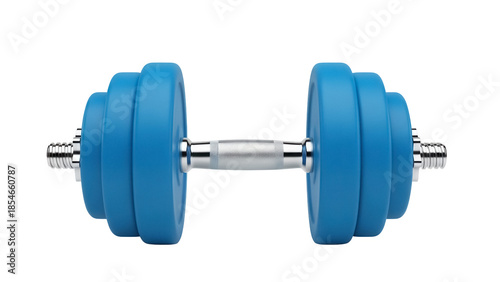© Johnson, Fototapeta premium Blue dumbbell isolated PNG, fitness equipment for strength training and bodybuilding on transparent background, exercise tool