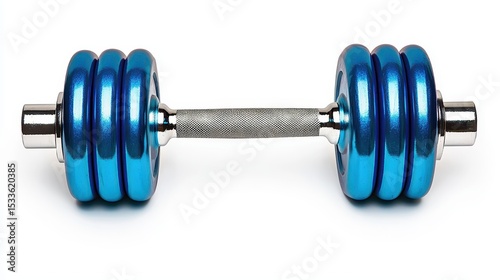 © Dragon42, Fototapeta premium Blue Dumbbell Weights on White Background