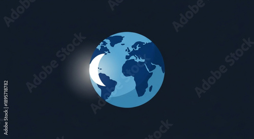 © Atta, Fototapeta premium Blue Earth Globe Illuminated in Dark Space