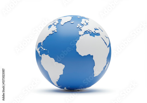 © Manji, Fototapeta premium Blue Earth Globe on White Background Shows World Continents Detail