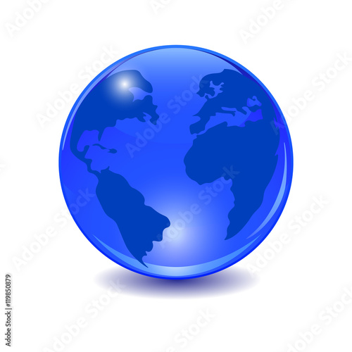 Naklejka premium Blue earth. Stylized glossy ball with shadow illustration