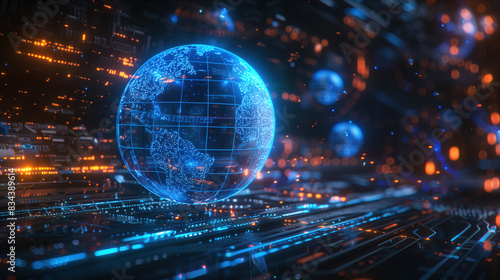 Obraz premium Blue Earth Tech Sci-Fi Abstract Line Light Beam Glossy Background