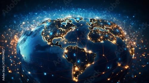 Obraz premium Blue Earth Technology Network with Global Connectivity