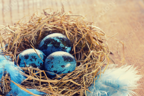 Obraz premium Blue easter eggs in nest