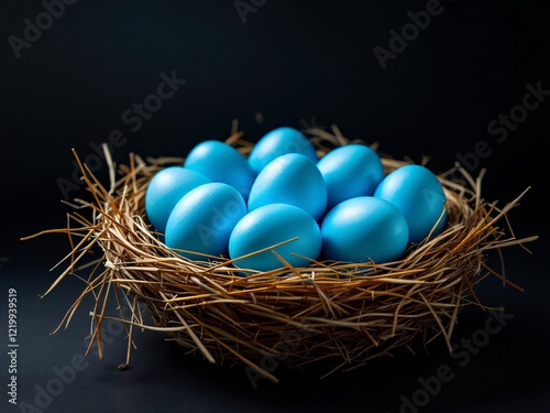 © Zilvinas, Obraz premium Blue eggs in straw nest