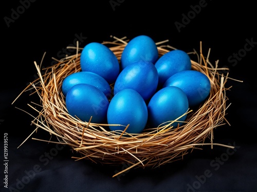 © Zilvinas, Obraz premium Blue eggs in straw nest