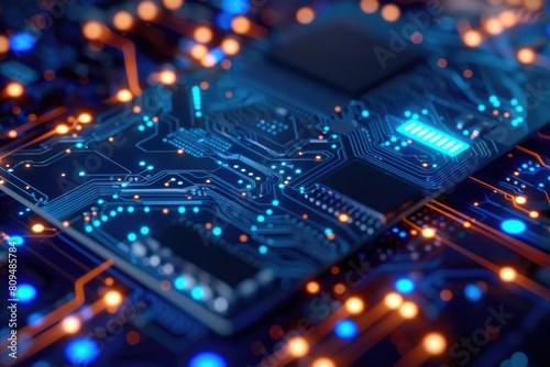 Obraz premium Blue Electronic Banking Card with Chip for Credit, Withdrawal, and Purchases