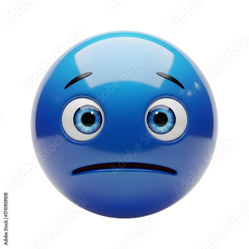 © Muhammad Wasiq , Fototapeta premium Blue emoji with a sad expression isolated on white background, looking unhappy