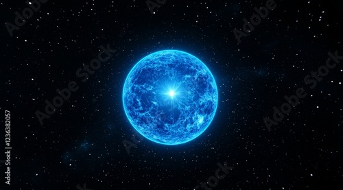 Naklejka premium Blue energy sphere explodes in space; cosmic background, science fiction