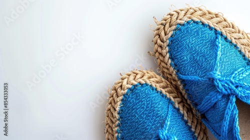 © The 2R Artificiality, Fototapeta premium Blue espadrilles on white background with space for text